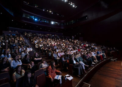 Foto de grupo en el escenario con mentores/as y mentees a los participantes de crossmentoring de la 4ª edición (septiembre 2023) y la 6ª edición (septiembre 2024)